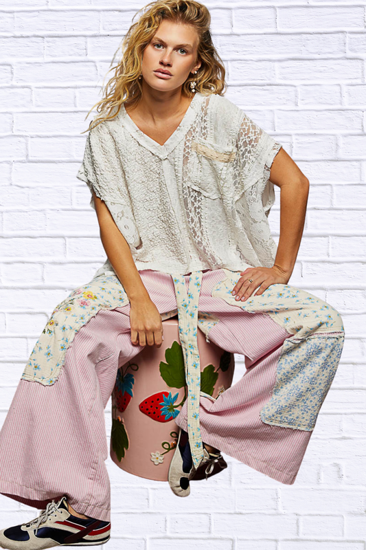 Eyelet Lace Detail Short Sleeve Blouse