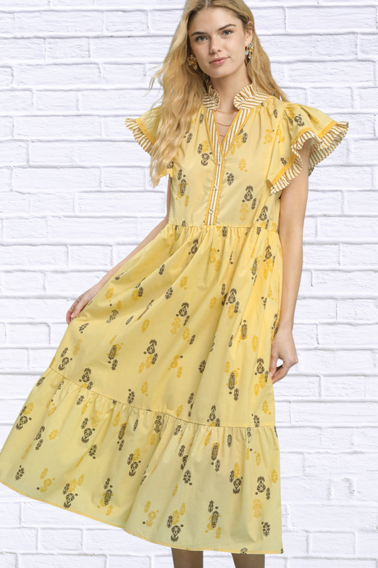 Umgee Floral Ruffle Sleeve Tiered Midi Dress