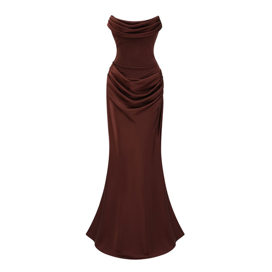 Vedette Brown Ruched Corset Maxi Dress