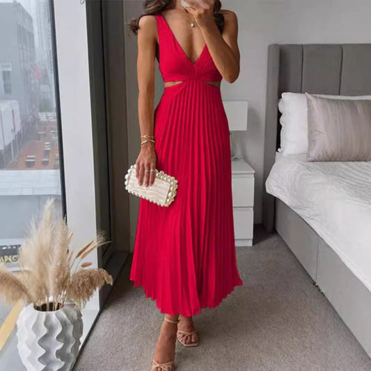 Sofia Amoretti Pleated Cutout Waist Midi Dress