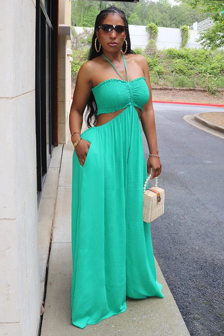 Sleeveless Button Up Backless Swing Maxi Dress