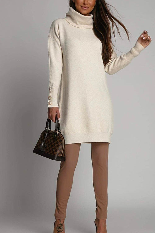 Rollkragenknöpfe Einfarbig Lässiges Pulloverkleid
