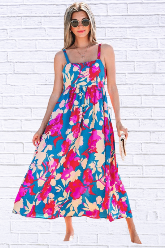 Bow Shoulder Sleeveless High Waist Floral Print Mini Dress