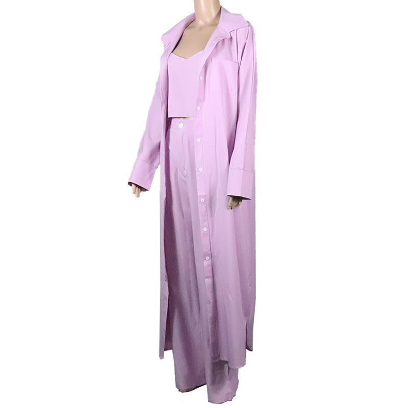 Elevate your autumn wardrobe with this chic three-piece ensemble, featuring a stylish casual trench coat, wide-leg pants, and a coordinating top. Perfect for any occasion, this set offers a blend of comfort and sophistication, making it a must-have for the modern woman.