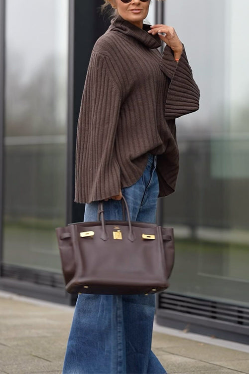 Rollkragenpullover mit überschnittenen Schultern und lockerer Passform aus Rippstrick