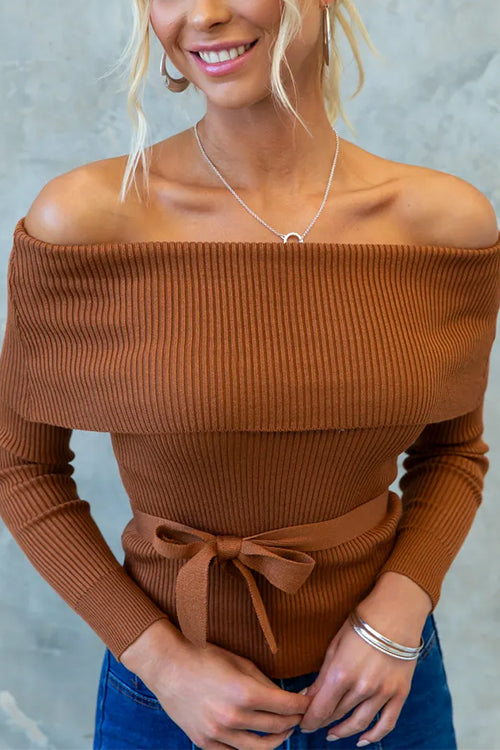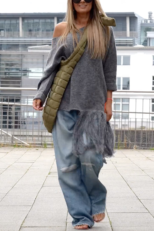 Stylischer, kuscheliger Pullover mit kalter Schulter und Quaste