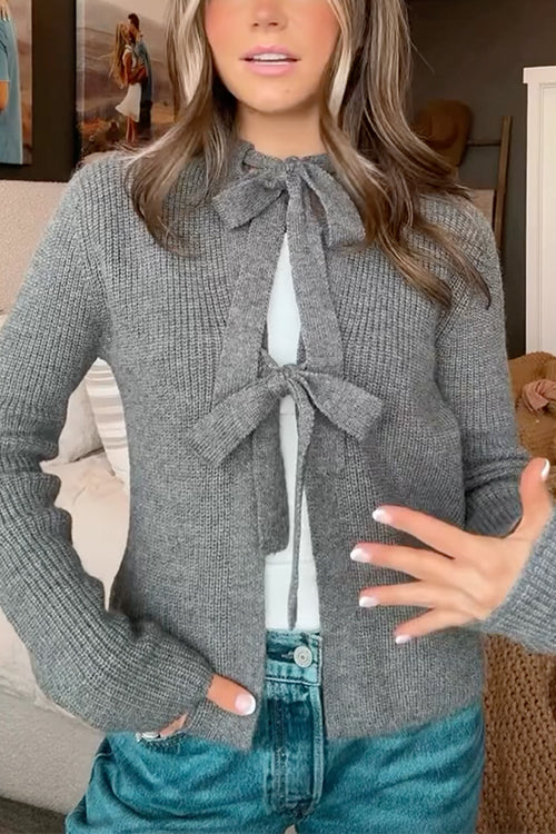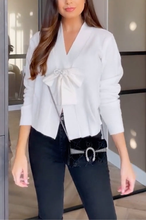 Pullover mit V-Ausschnitt, langen Ärmeln und Schleife vorne