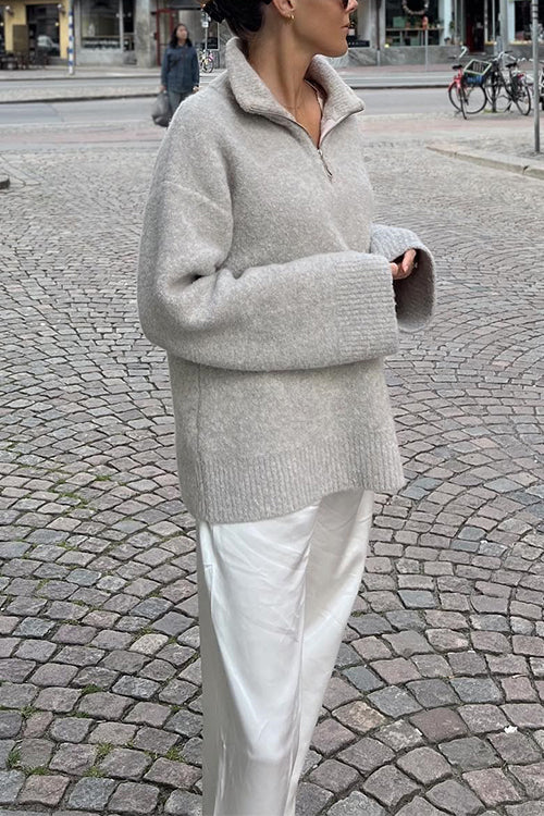 Lässiger Pullover mit Rollkragen und Viertelreißverschluss, überschnittenen Schultern