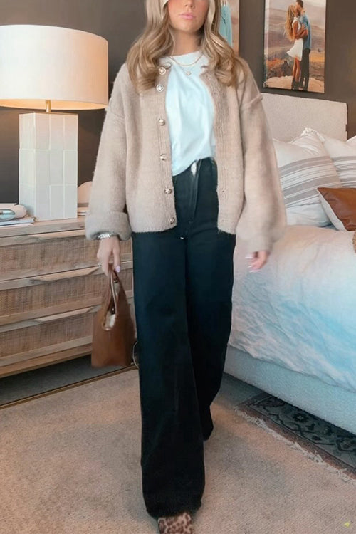Strickjacke mit überschnittenen Schultern und Knopfleiste
