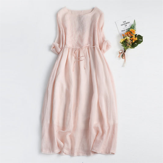 Kleid mit Rundhalsausschnitt, Stickereien und 3/4-Ärmeln zum Binden