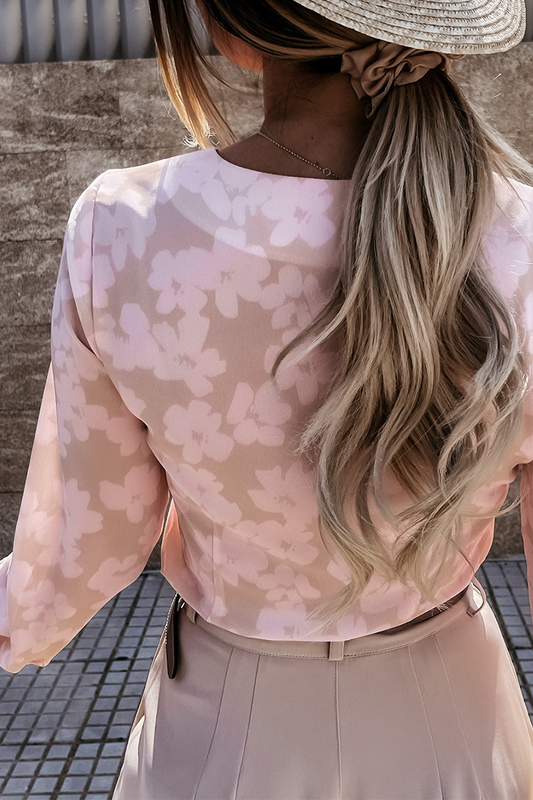 Elegantes V-Ausschnitt-Top mit Patchwork-Schnalle und Print (3 Farben)