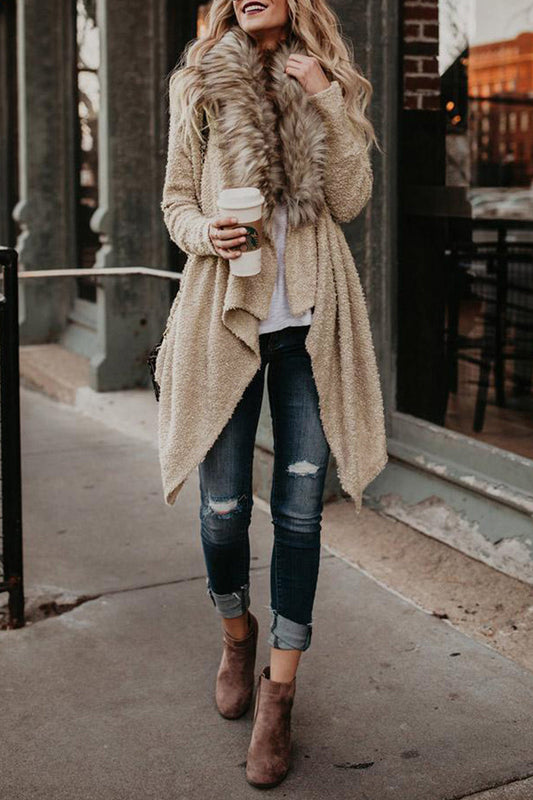 Modische, lässige, einfarbige Strickjacke mit Umlegekragen