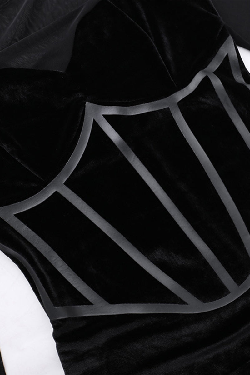 Sexy Kleider aus Samt mit Netzstoff und Federsaum und Rundhalsausschnitt, Wickelrock