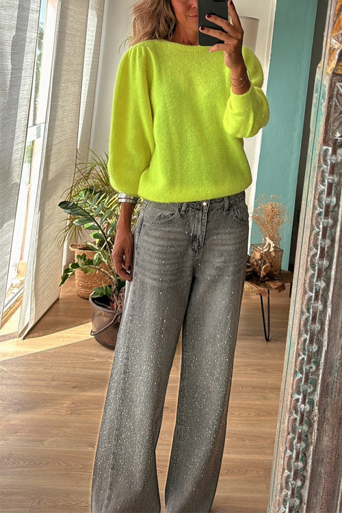 Fluoreszierender Pullover mit Rundhalsausschnitt und Puffärmeln (2 Farben!)