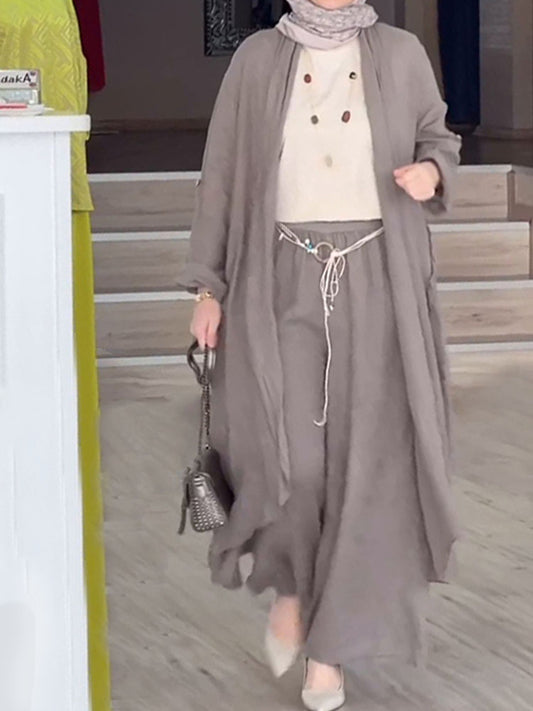 Lockerer, langer Cardigan-Hosenanzug mit weitem Bein