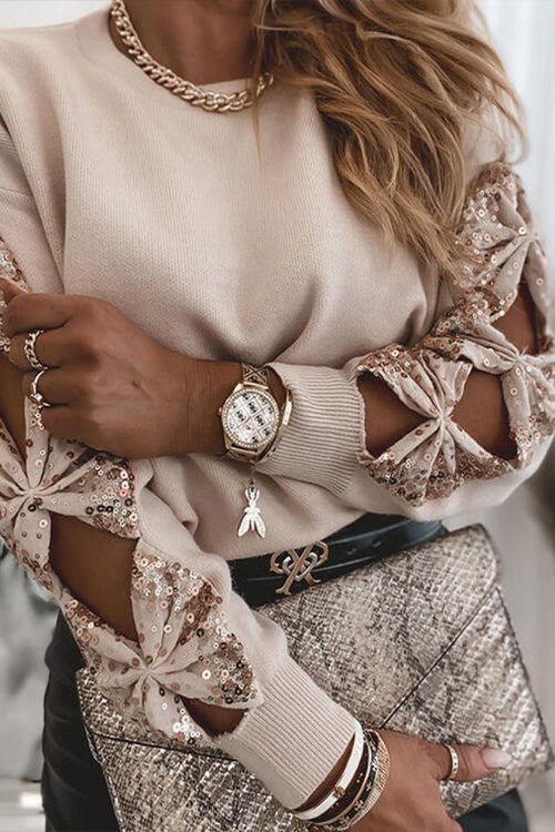 Pullover mit Rundhalsausschnitt, Pailletten und Schmetterlings-Ausschnitt