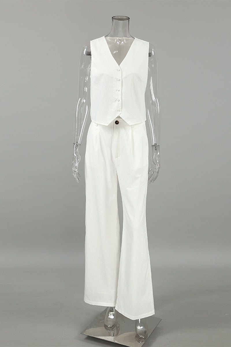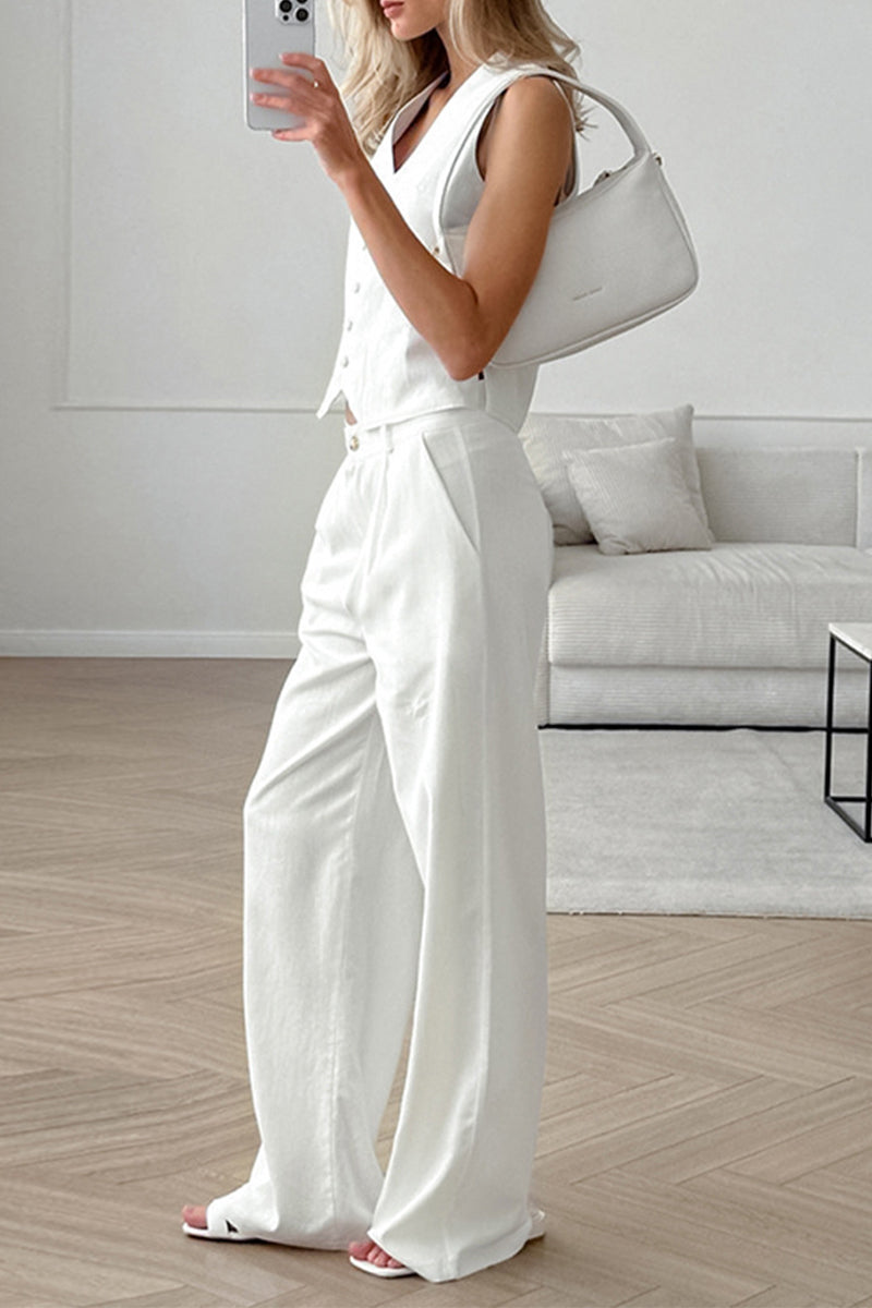 Lässig Täglich Einfarbig Tasche Knöpfe V-Ausschnitt Ärmellos Zweiteiler