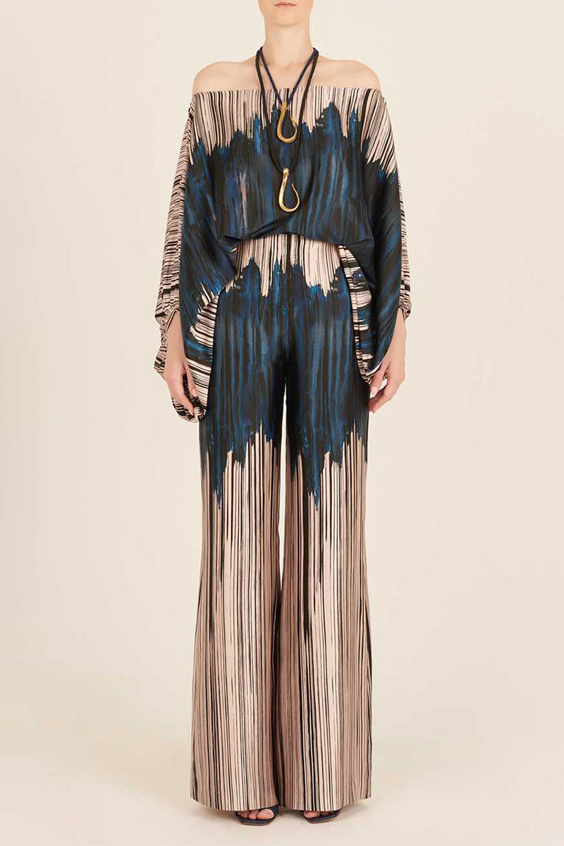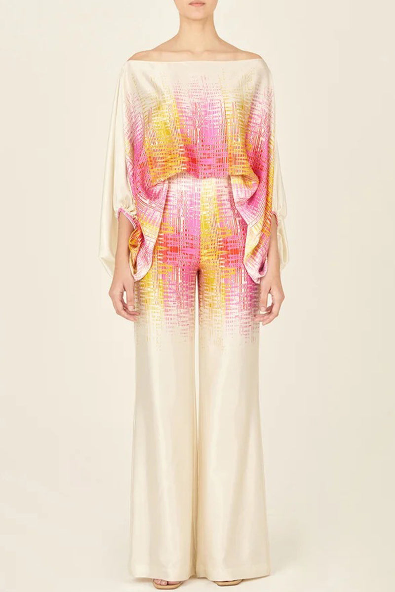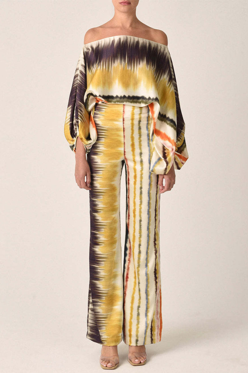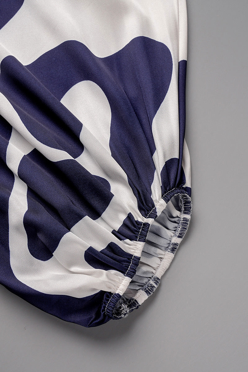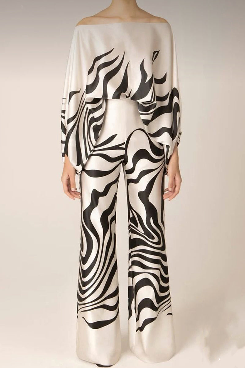 Lässiger, eleganter Patchwork-Druck, schulterfrei, lange Ärmel, zweiteilig (11 Farben)