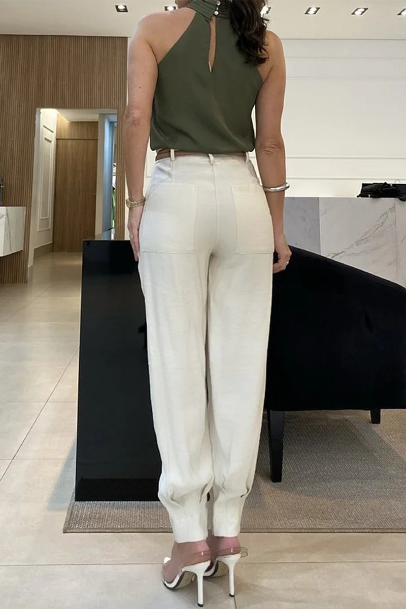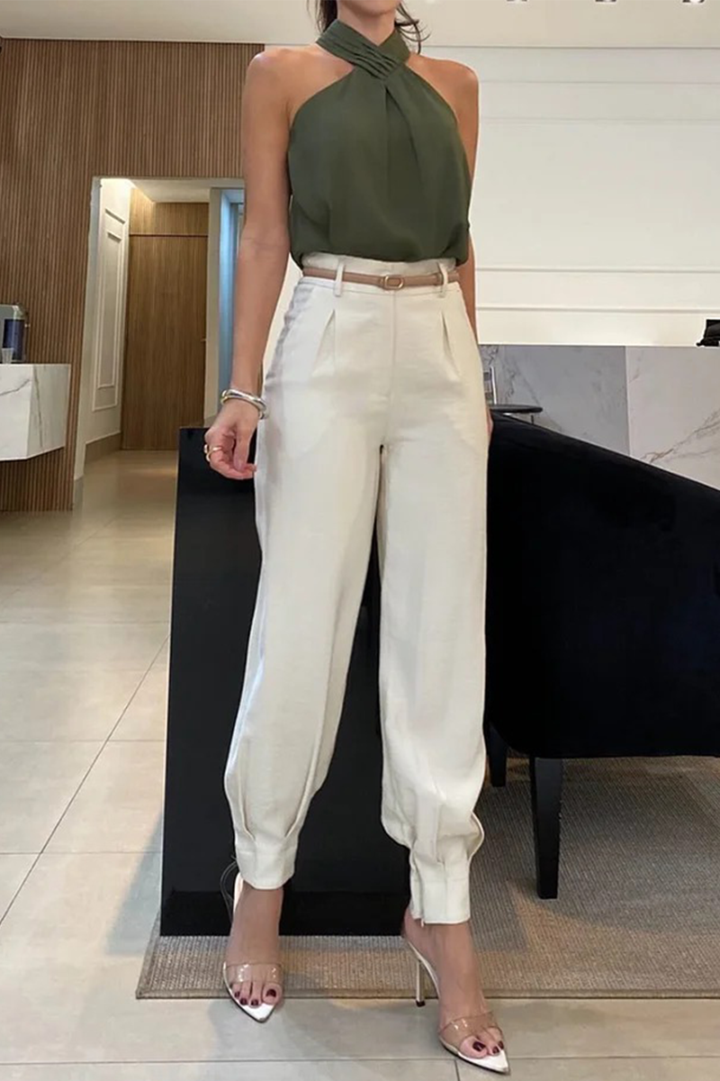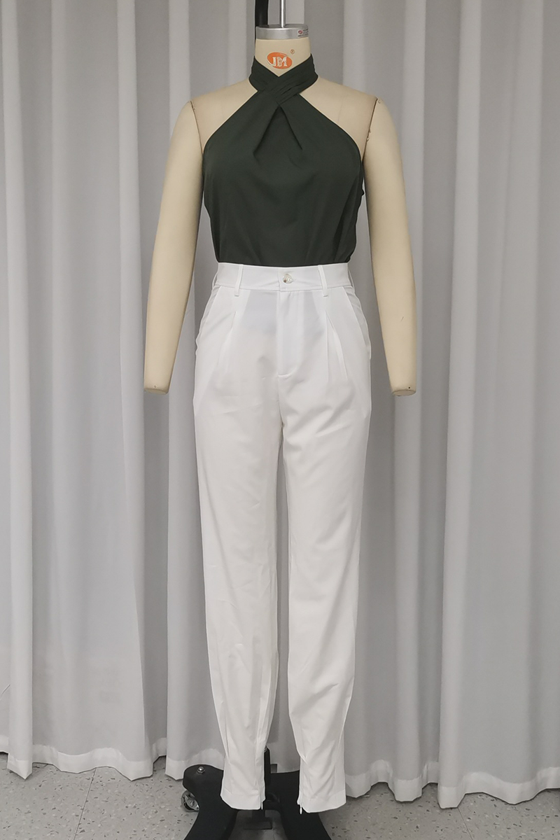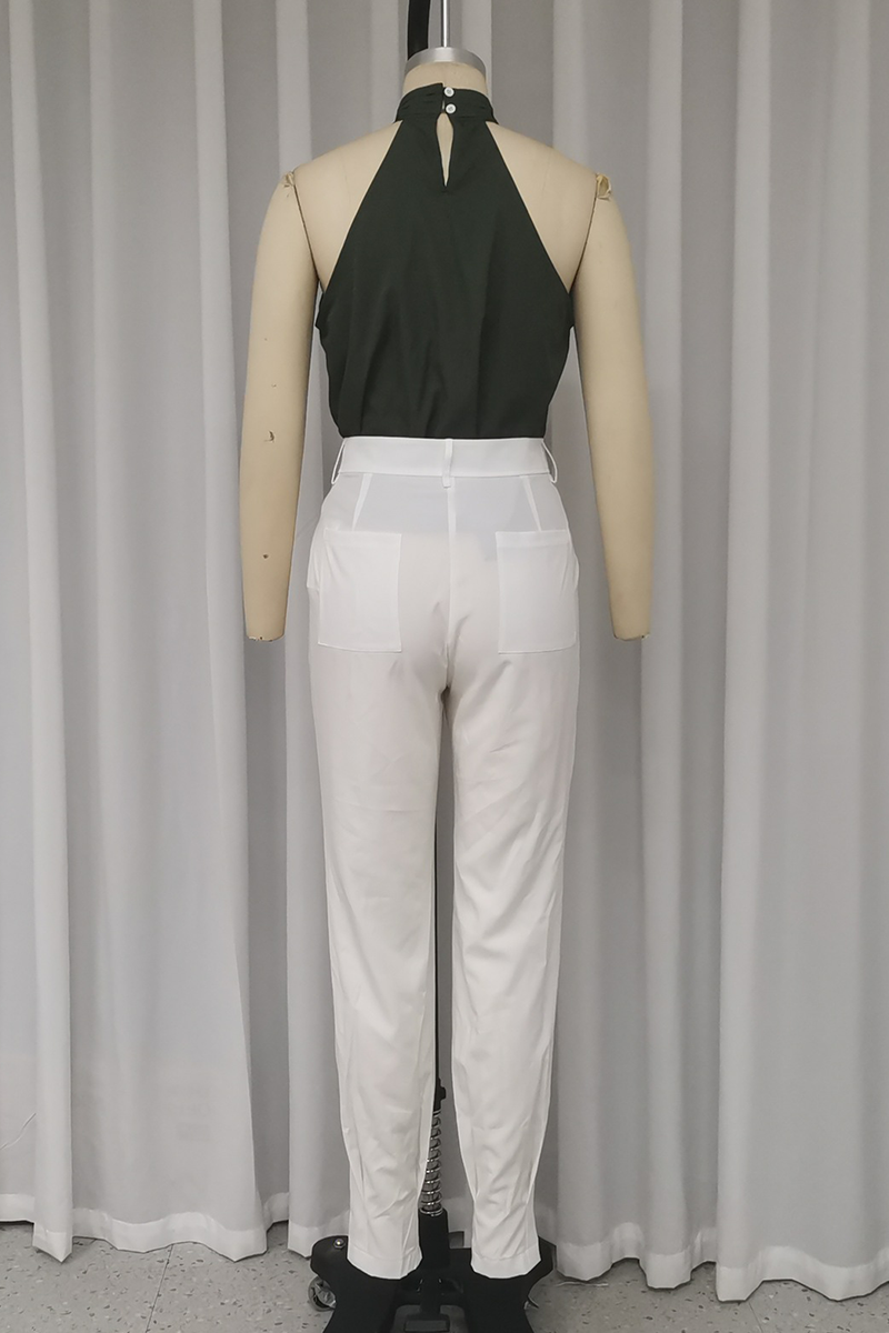 Lässig Einfarbig Aushöhlen Ohne Gürtel Neckholder Ärmellos Zwei Stücke