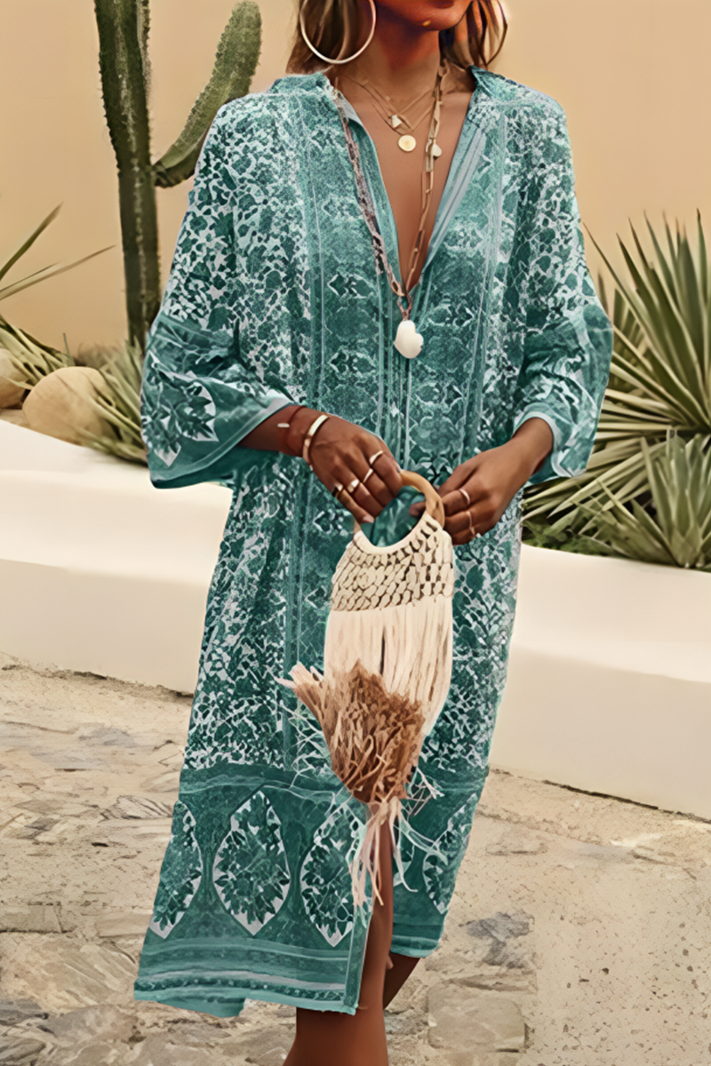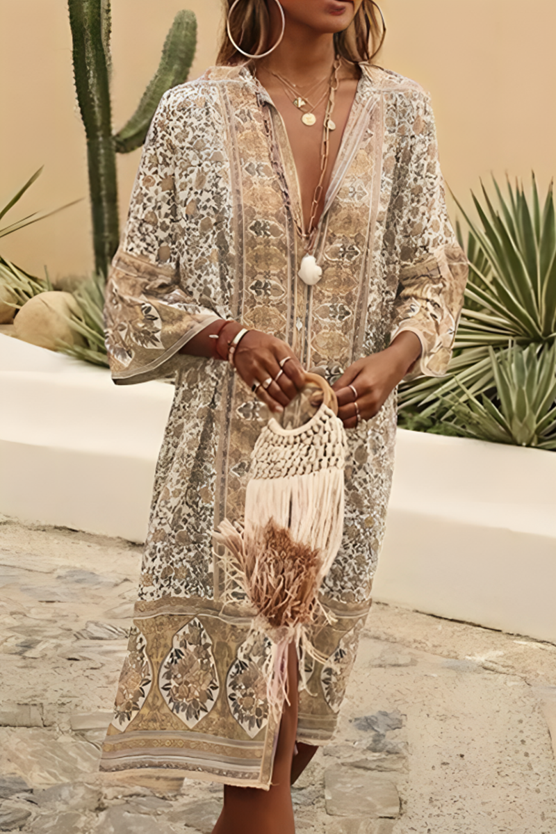 Modisches Kleid mit Patchwork-V-Ausschnitt und Vintage-Print (5 Farben)