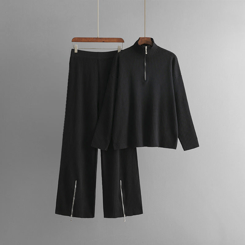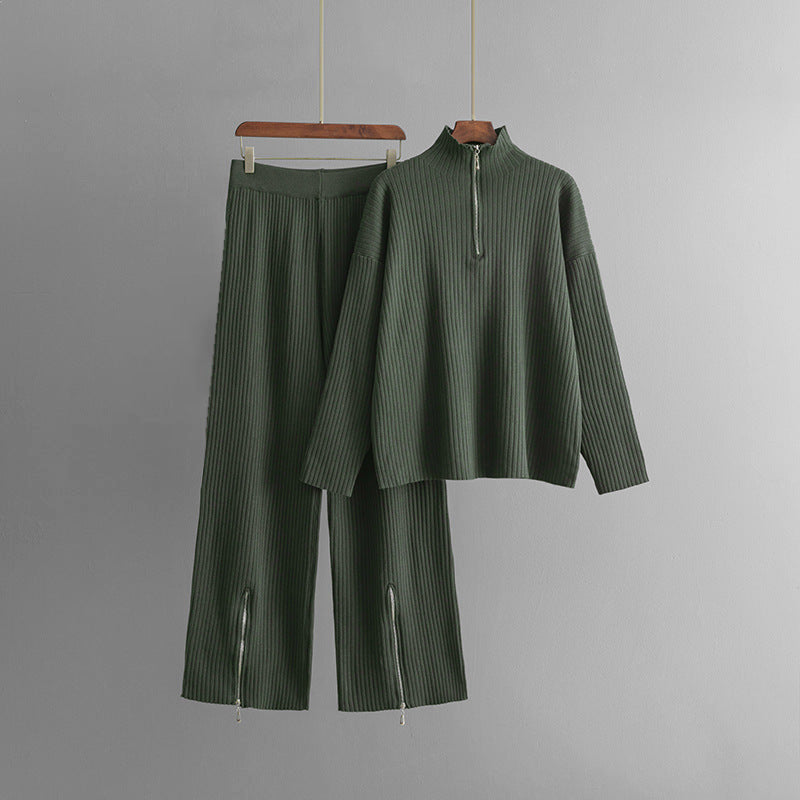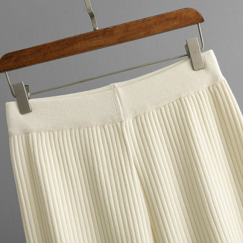 Das Knit Harmony Set von Valentina Rossi besteht aus einem Pullover mit hohem Kragen und einer Hose mit weitem Bein, die sich mühelos ergänzen. Das Set aus luxuriösem Strickstoff verbindet anspruchsvolle Eleganz mit entspanntem Komfort.