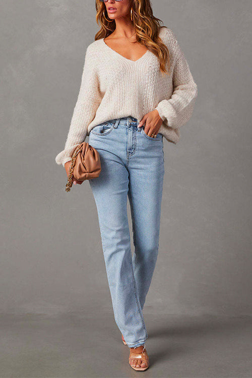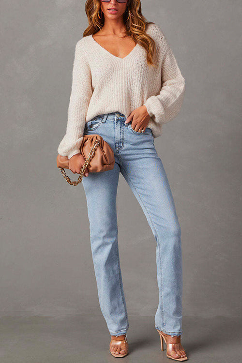 Distressed-Jeans mit geradem Bein und unversäubertem Saum