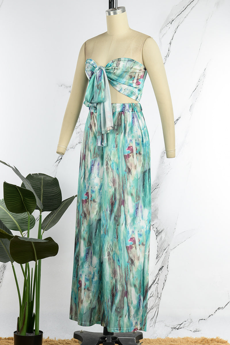 Sexy, lässiger, bedruckter, rückenfreier, trägerloser, ärmelloser Zweiteiler (je nach tatsächlichem Objekt)