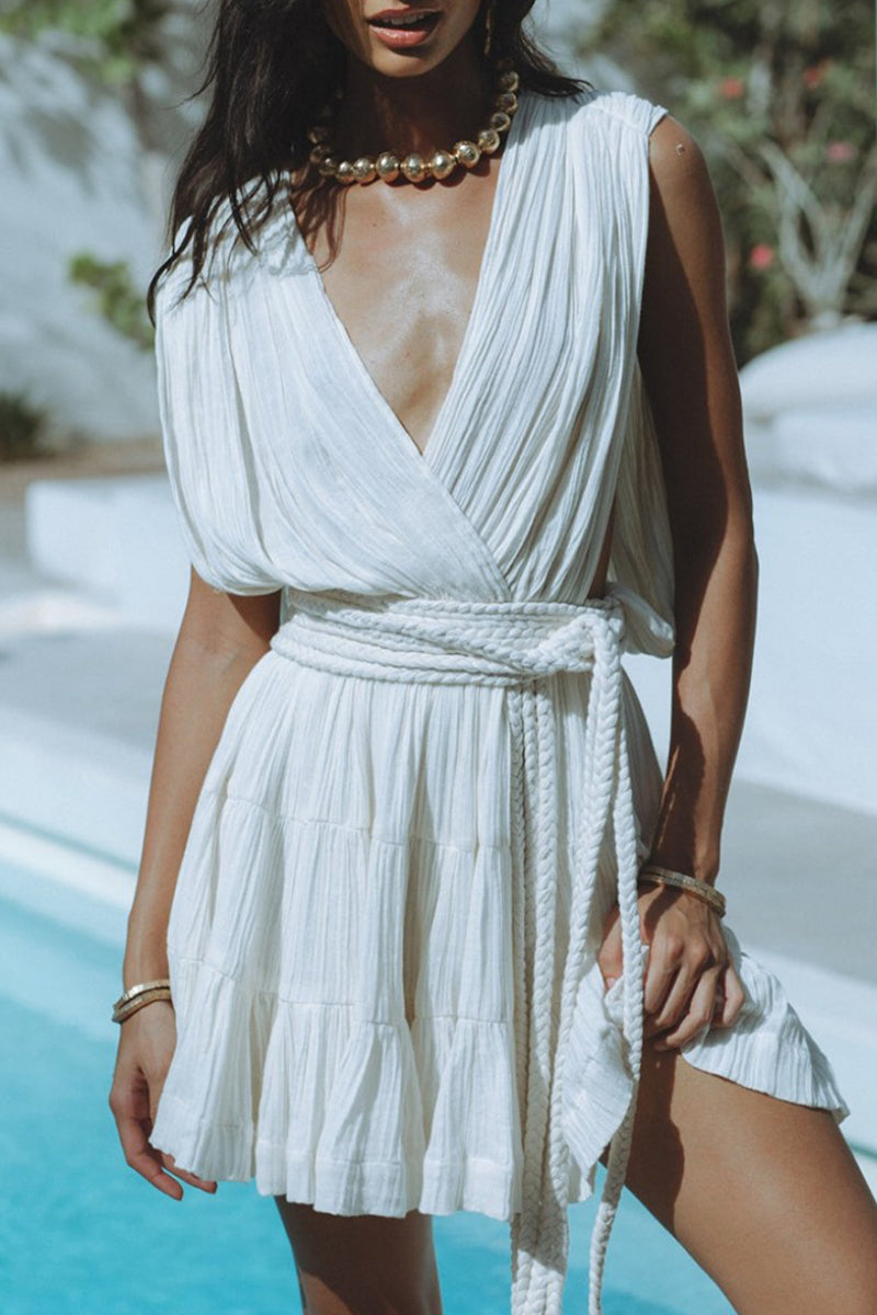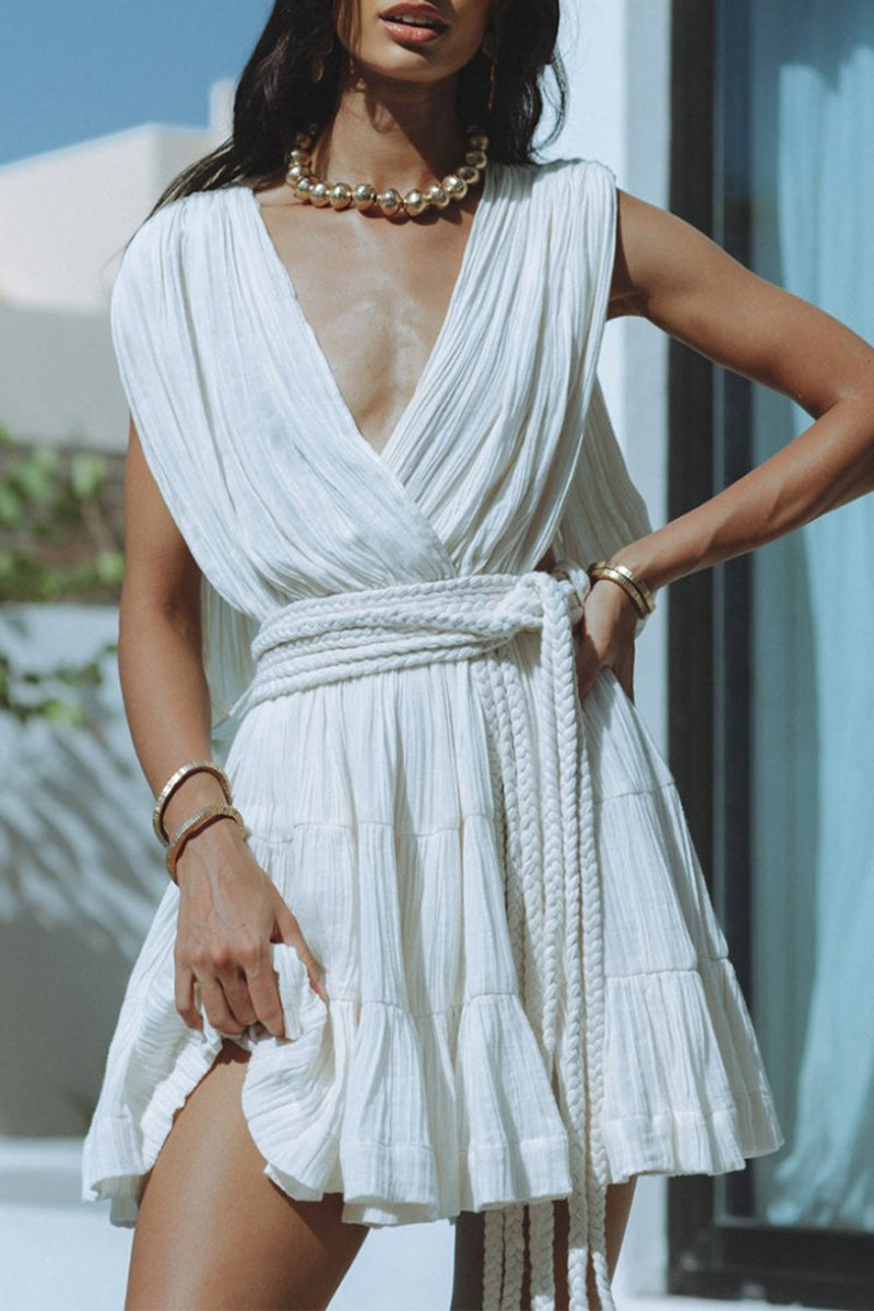 Sexy, einfarbige, rückenfreie, ärmellose Kleider mit V-Ausschnitt und Schnürung für den Alltag