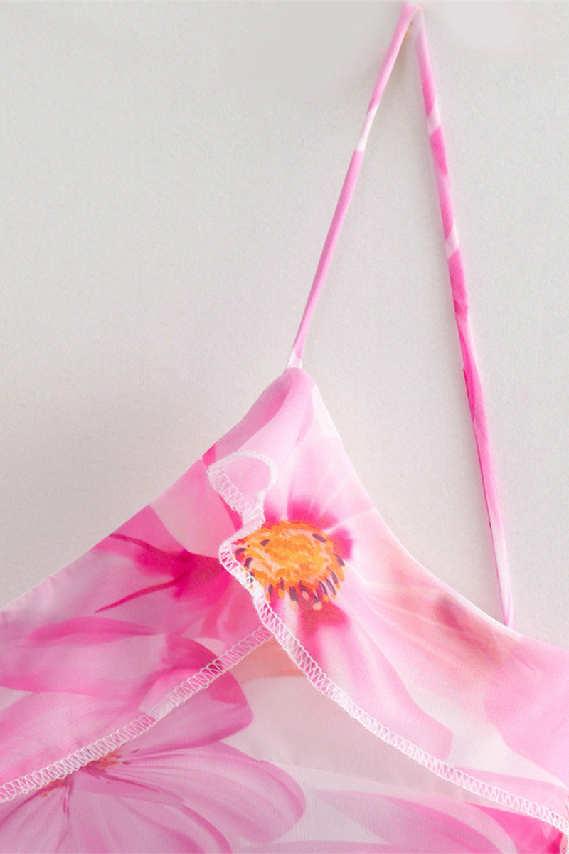 Sexy rückenfreies Sling-Kleid mit Blumendruck und Rüschen und V-Ausschnitt