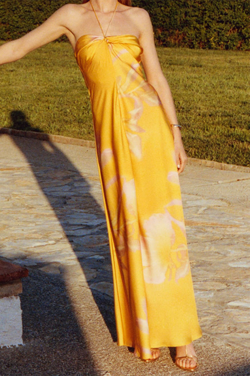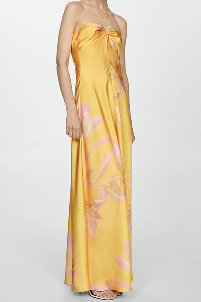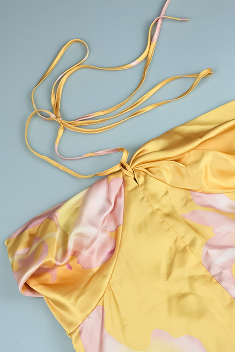 Sexy, rückenfreies Neckholder-Kleid mit Blumendruck und Schnürung