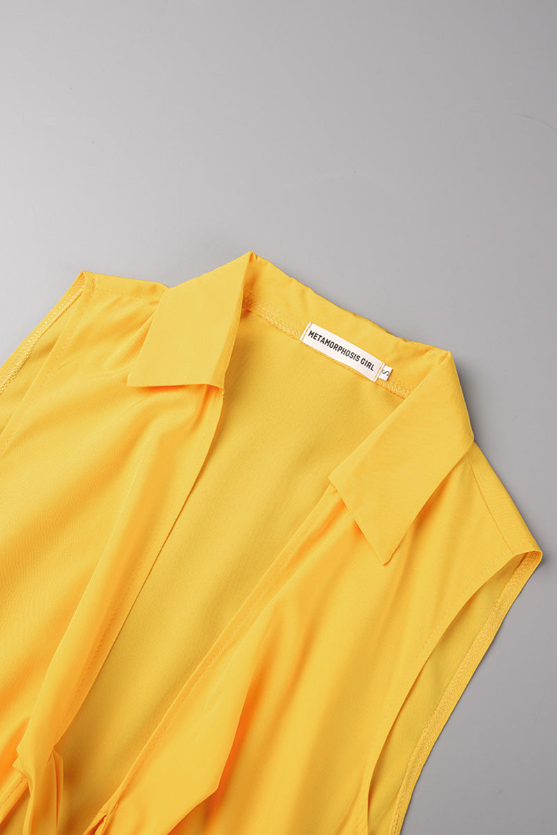 Sexy Jumpsuit mit durchgängigem Bandage-Muster, ausgehöhltem Patchwork-Umlegekragen und geradem Bein