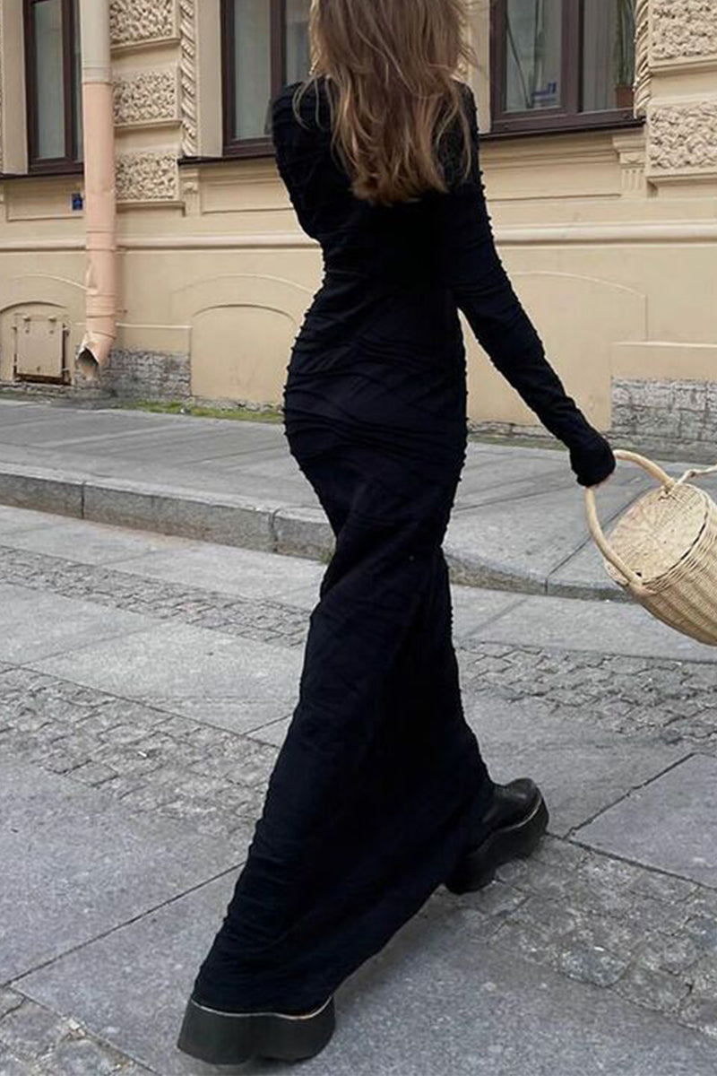 Sexy Kleider mit einfarbigem Patchwork und O-Ausschnitt, einstufiger Rock