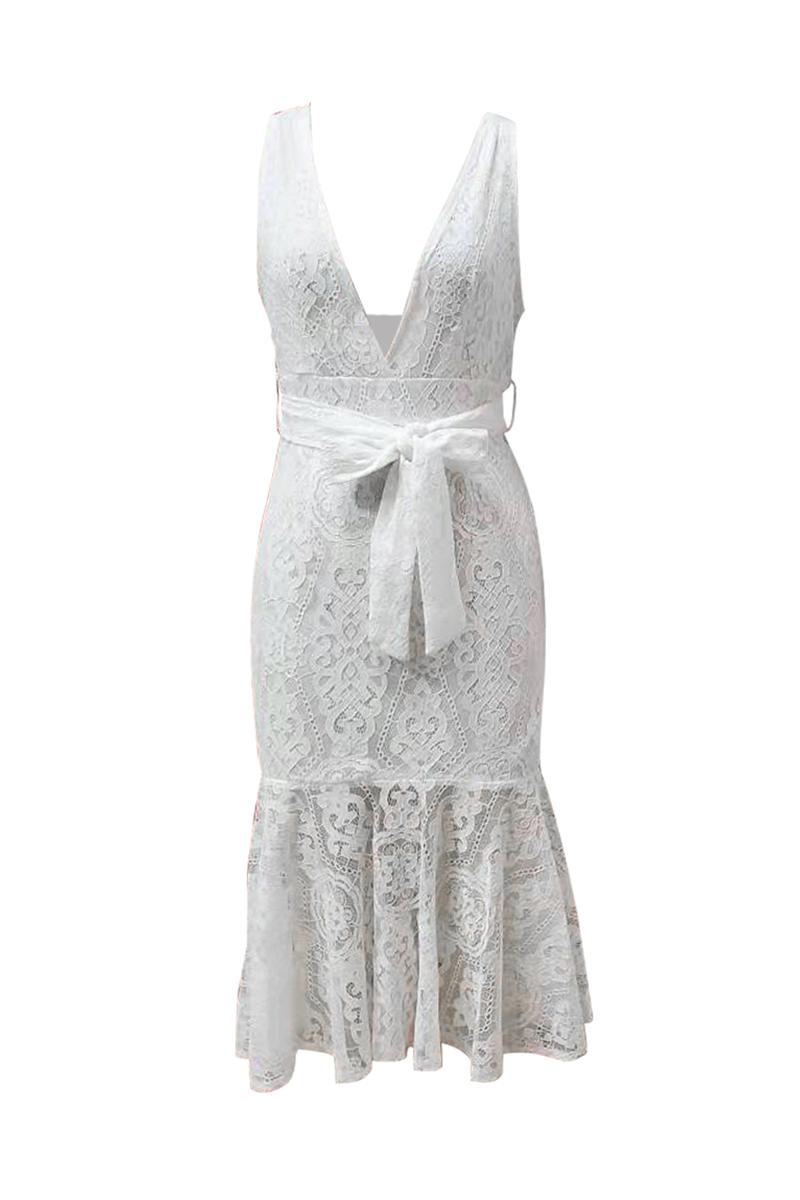 Sexy Urlaub Solide Spitze Mit Schleife V-Ausschnitt Trompete Meerjungfrau Kleider
