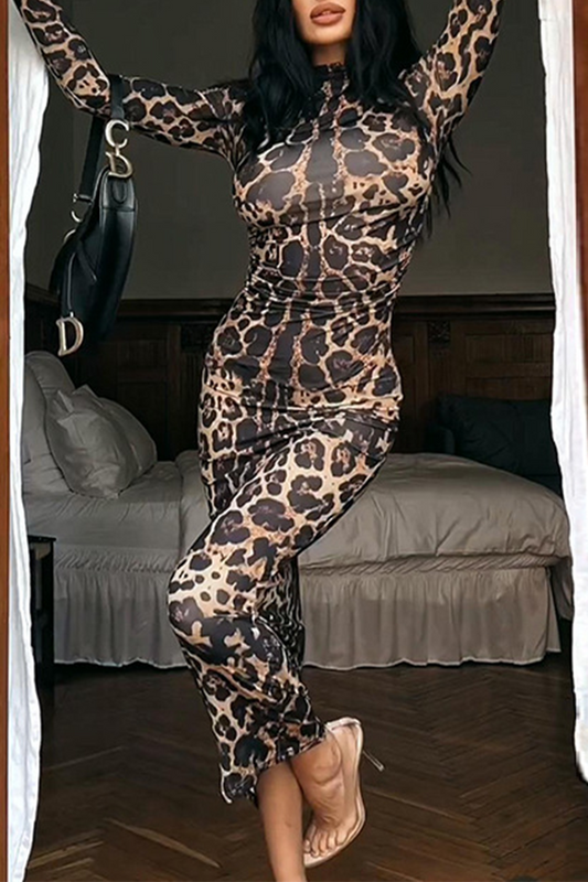 Sexy Snakeskin Print Stripe Contrast Half A Turtleneck One Step Skirt Dresses
