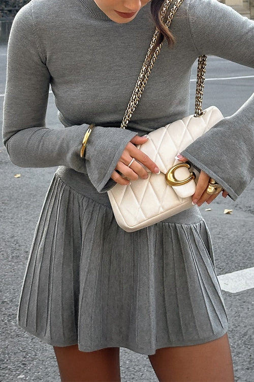 Elegant Solid Color Weave Potholes Turtleneck Long Sleeve Two Pieces