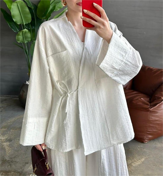 Solid Lapel Shirt & Pants Two-Piece Set (Without belt)