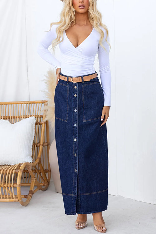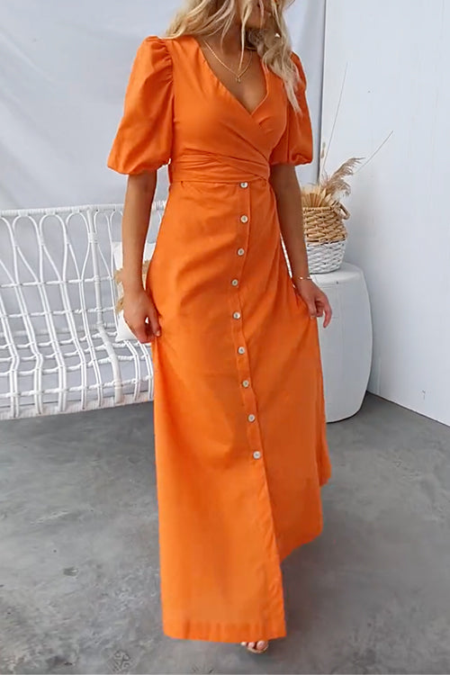 Wrapped V Neck Waisted Slit Maxi Party Dress