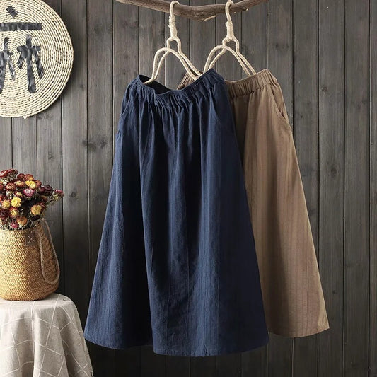 Loose Cotton Linen Tie Three Quarter Sleeve Dress