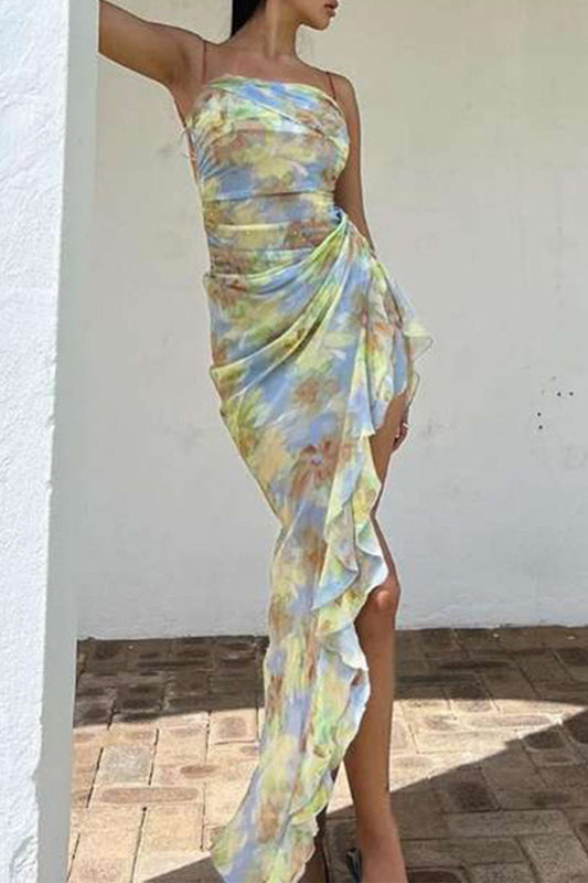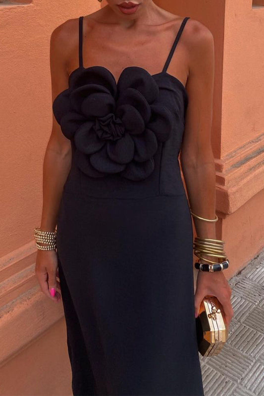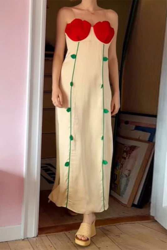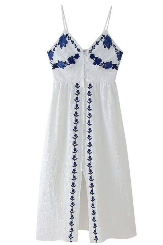 Sexy Flowers Embroidered Slit V Neck Sling Dresses