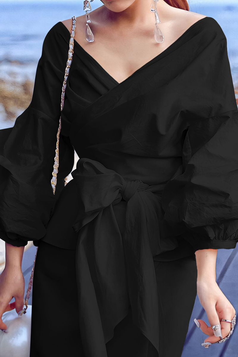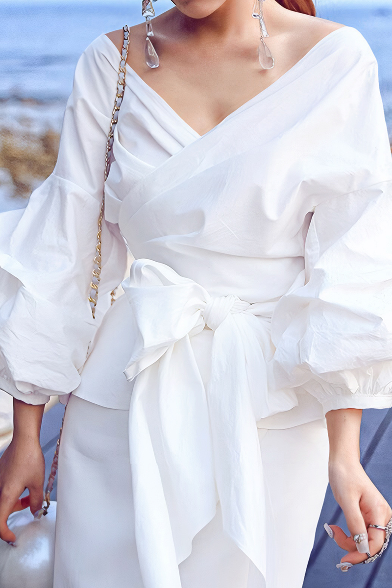 Casual Solid Color Patchwork Strap Design V Neck Tops