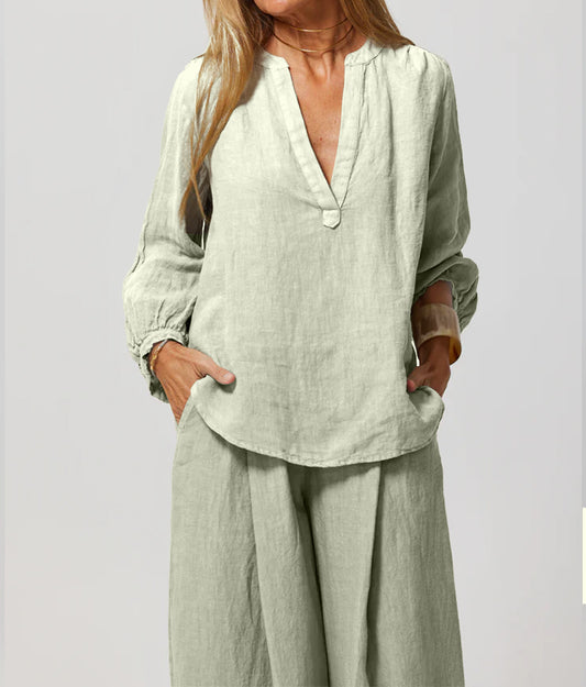 Casual Linen Elegant Solid Color Two-piece Set (Vest & Pants)