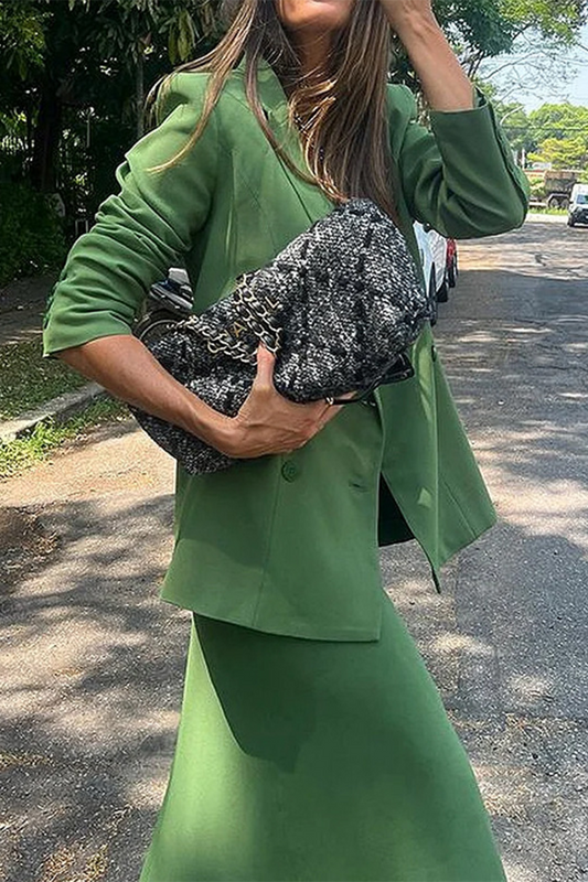 Casual Simplicity Solid Bandage Pocket Turndown Collar Long Sleeve Two Pieces