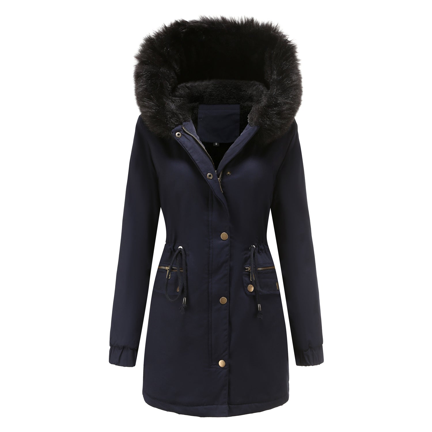 Stay cozy and stylish this season with our fleece-lined, hooded jacket featuring a luxurious fur collar. Designed for warmth and comfort, this loose-fitting cotton coat is perfect for chilly days. Available in plus sizes, it offers a flattering fit for everyone.