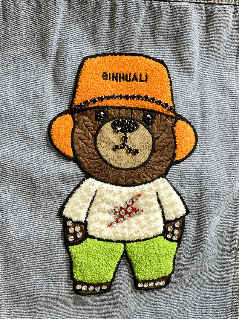 Discover the perfect blend of style and comfort with this light blue denim vest, designed for the fashion-forward woman. Featuring a unique flocked bears design, this loose-fitting small coat is ideal for both spring and autumn. Elevate your wardrobe with this trendy and versatile piece.