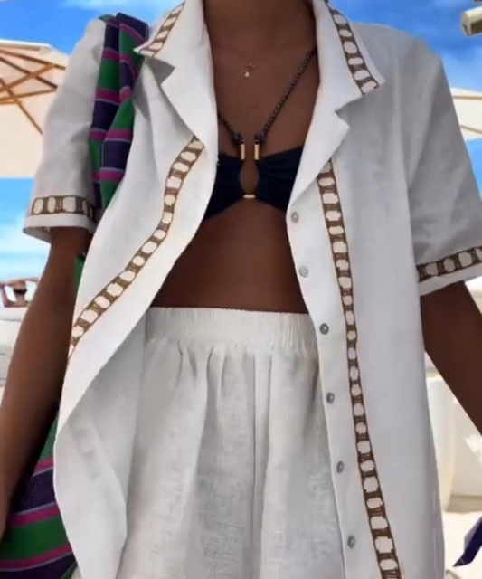 Balmy Summer Nights – Lockeres Hemd mit einzigartigem Druck und Wickelrock mit Schnürung und elastischer Taille