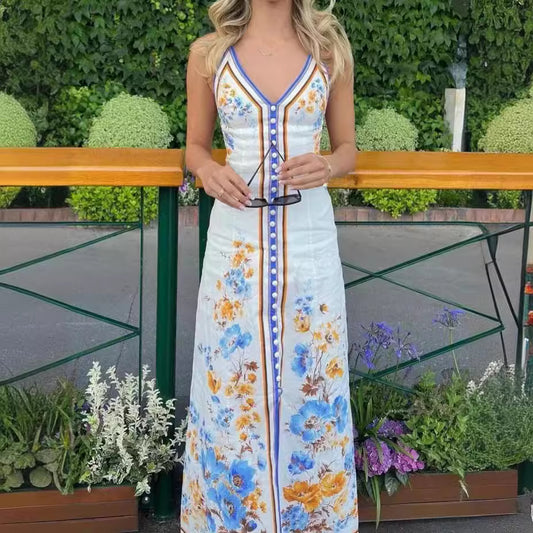 Vestido largo de tirantes con estampado escalonado y volantes sin espalda de Rosiedress