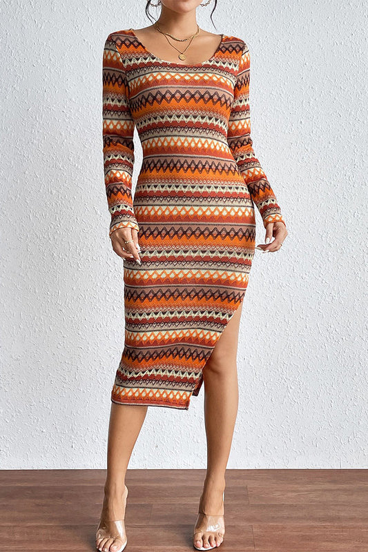 Vestidos elegantes a cuadros con estampado de rayas y abertura con cuello en O