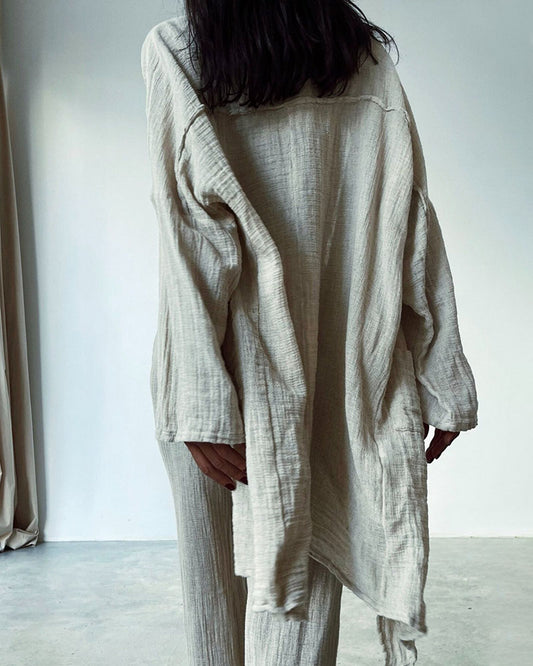 Zweiteiliges Set aus langem Cardigan aus Baumwolle und Leinen