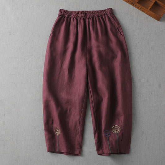 Verkürzte Freizeithose aus Baumwolle und Leinen mit elastischem Bund
