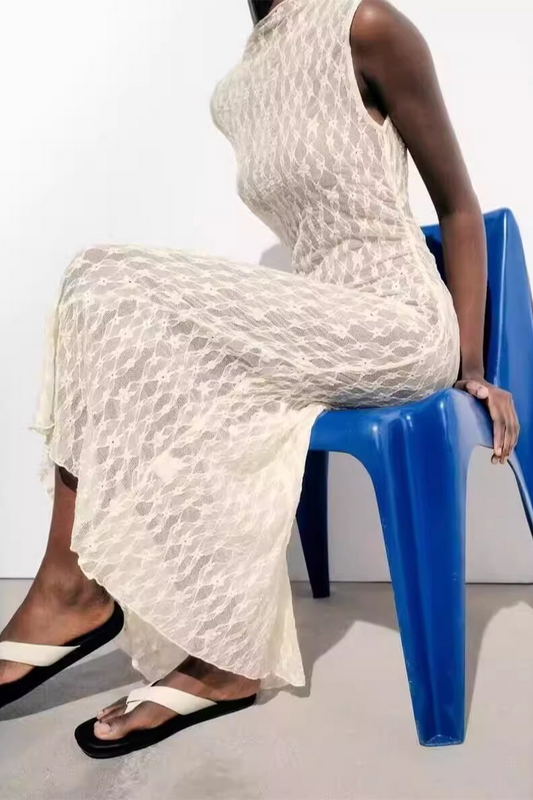 Sexy Solid Color Patchwork See-Through Irregular Oblique Collar Long Dresses
